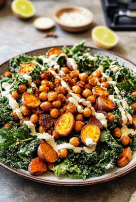 Delightful Kale Caesar Salad with Sweet Potatoes & Crispy Chickpeas