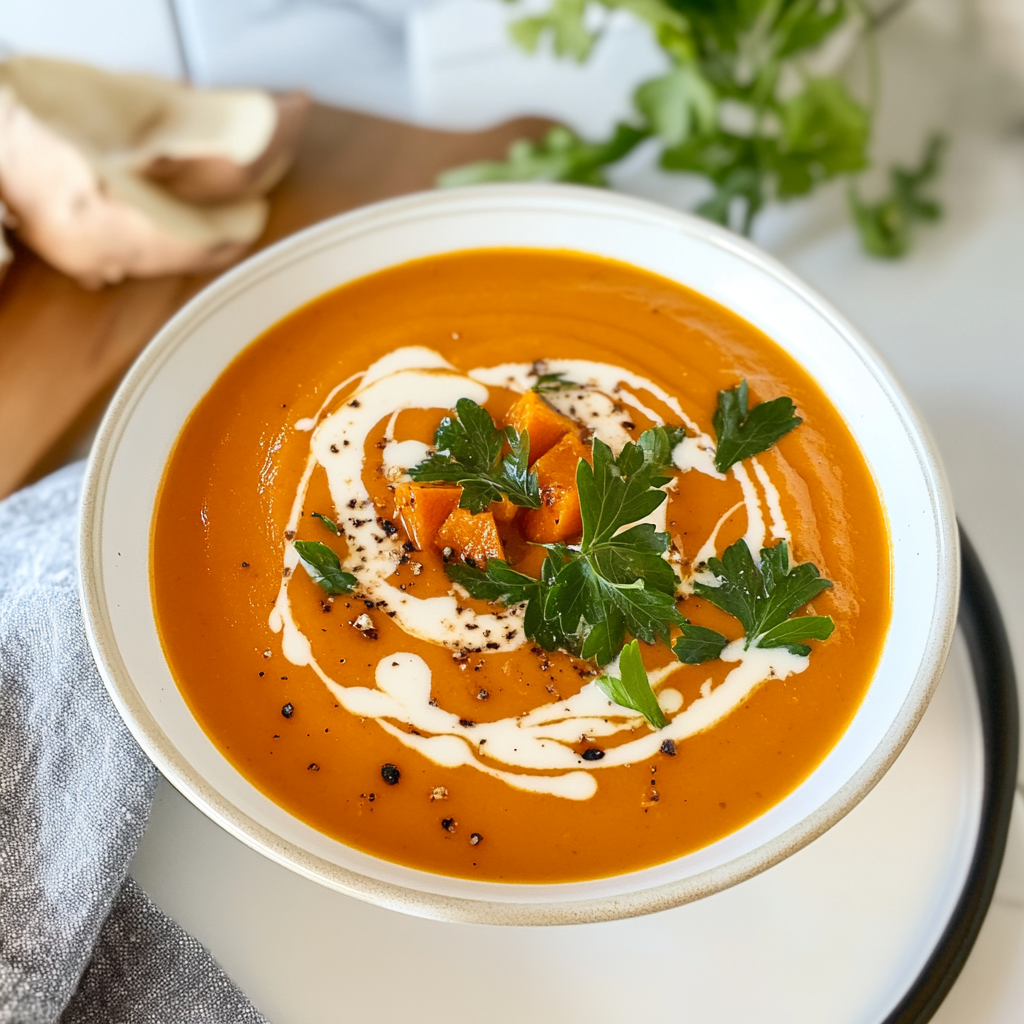 Cozy Roasted Butternut Squash & Sweet Potato Soup Recipe