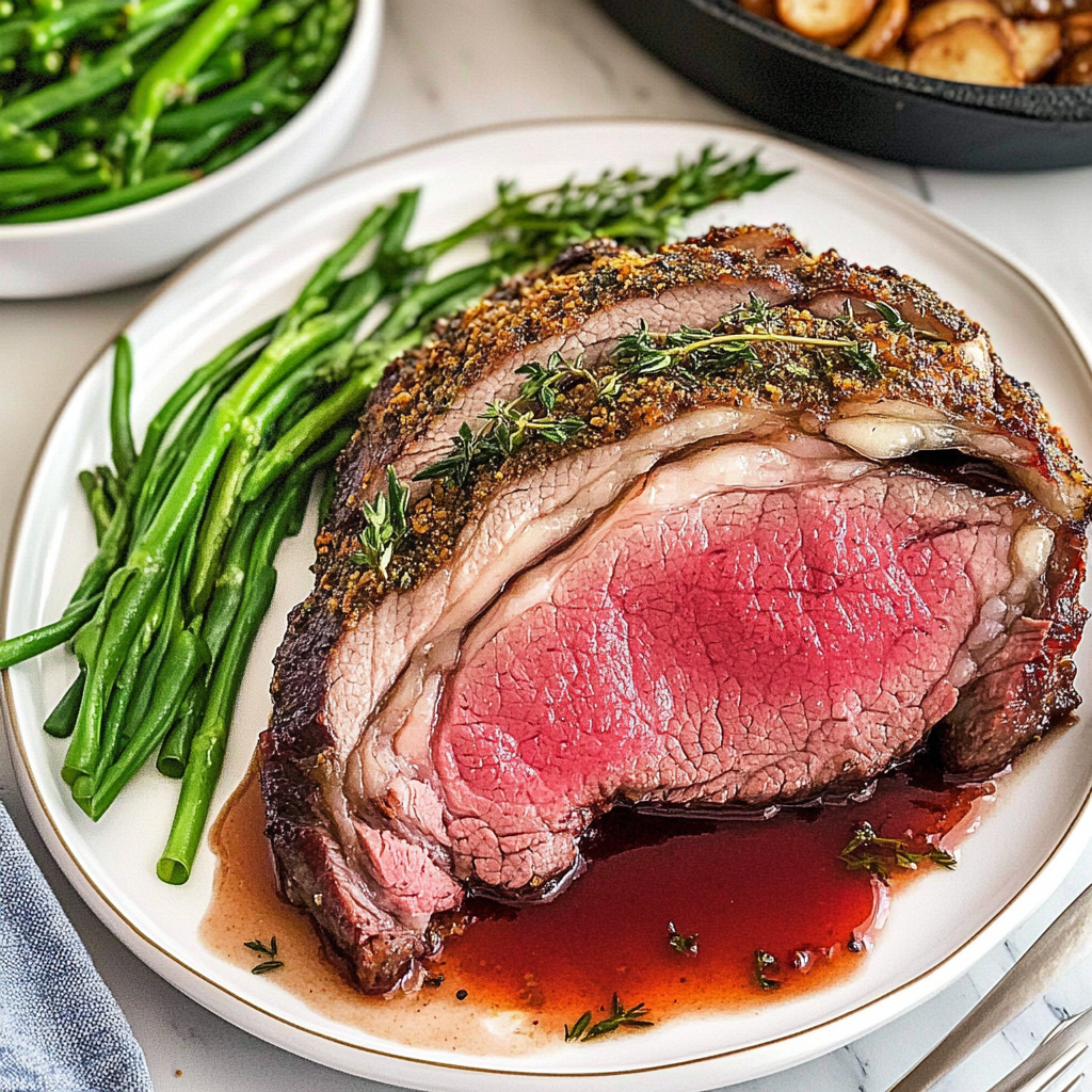 Irresistible Herb-Crusted Prime Rib with Red Wine Reduction