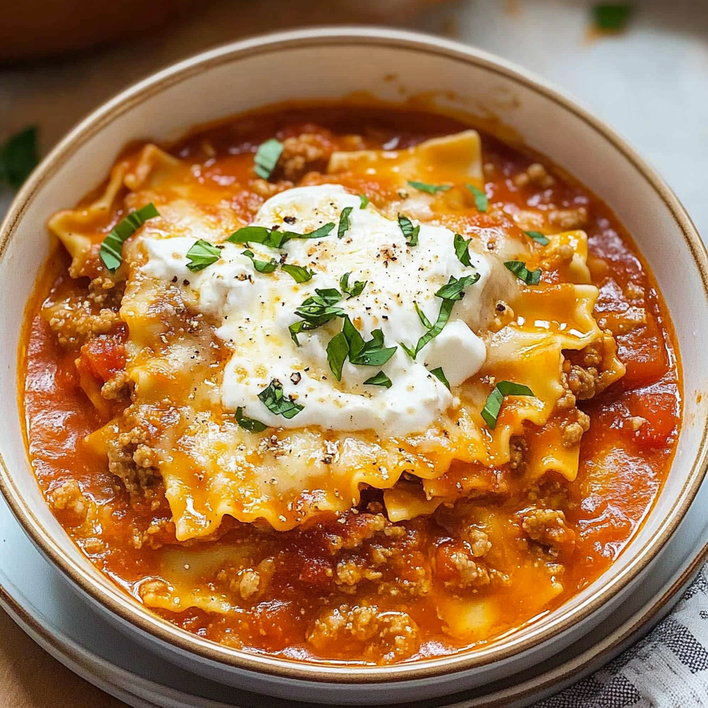 Savor the warmth of this One Pot Lasagna Soup, a comforting blend of rich flavors, creamy cheese, and tender pasta—perfect for cozy evenings or quick weeknight meals.