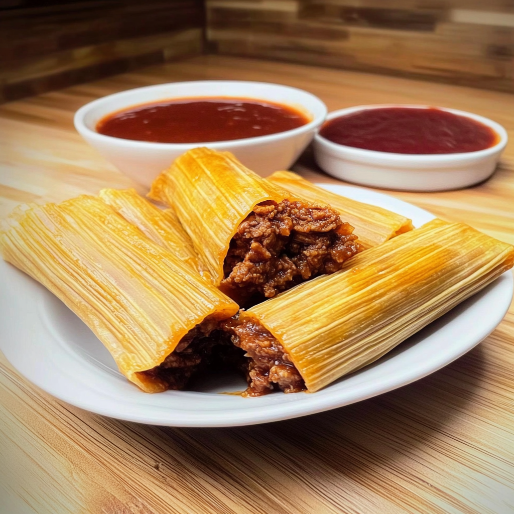 Indulge in the comforting delight of homemade beef tamales, featuring seasoned beef wrapped in soft corn masa—perfect for gatherings or cozy nights in.