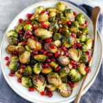 - Garnish and Serve: Once out of the oven, sprinkle fresh pomegranate seeds over roasted Brussels sprouts for added color and flavor. Serve warm.
