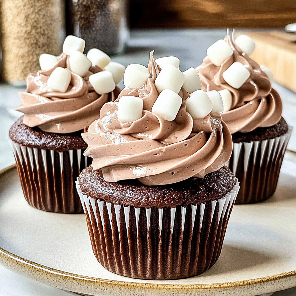 Indulge in these rich and moist hot chocolate cupcakes filled with gooey marshmallows and topped with fluffy frosting—a perfect treat for any occasion!