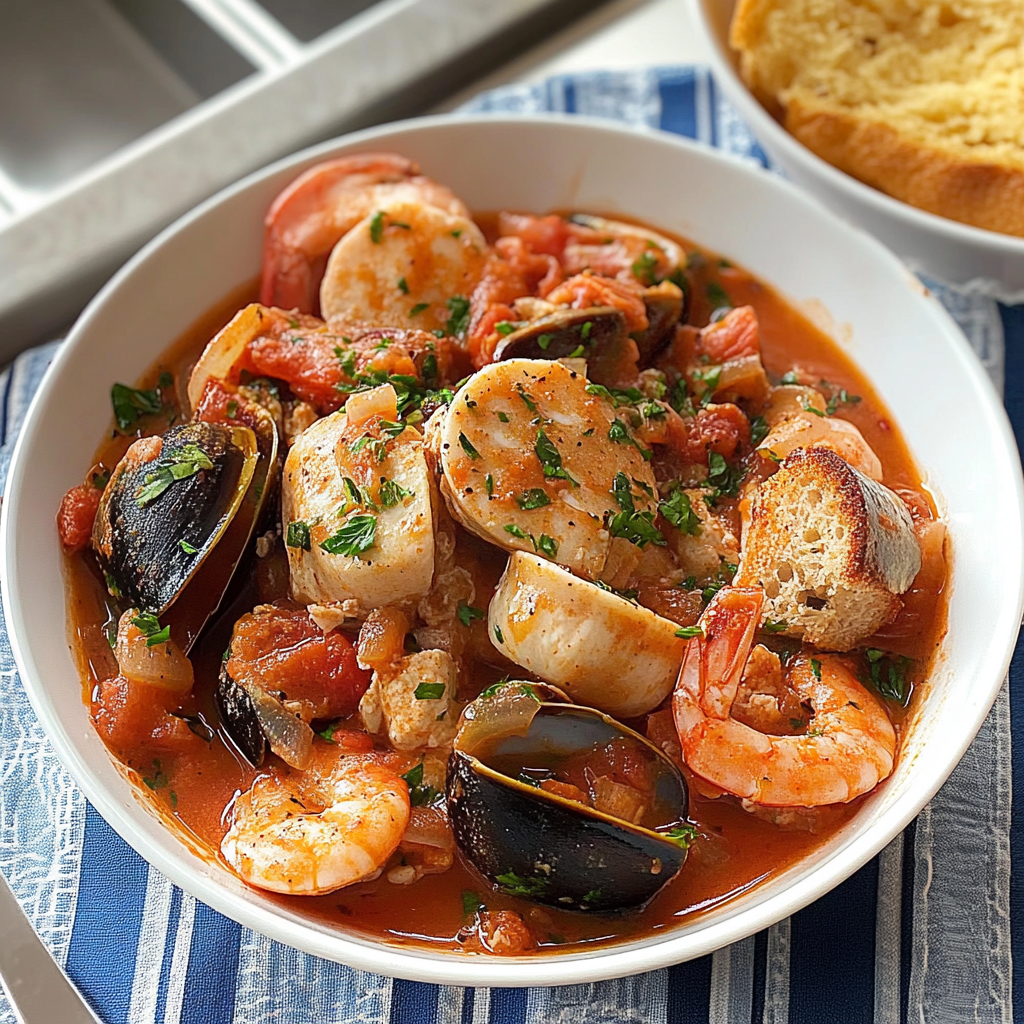 In summary, this cioppino recipe offers an easy way to enjoy a beloved seafood stew at home. With its rich flavors and customizable ingredients, you can create a unique dish that suits your taste preferences. Remember to use fresh seafood for the best results and serve it alongside crusty bread to savor every drop of that delectable broth. Enjoy this comforting meal with family and friends for an unforgettable dining experience!