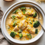 Indulge in this creamy, comforting dish featuring tender chicken and fresh broccoli, all simmered to perfection in your crockpot for a hassle-free, delicious meal.