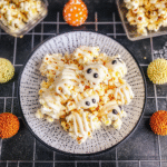 Mummy Popcorn is a fun and spooky treat that combines crunchy popcorn with a sweet caramel coating, drizzled in white chocolate for a festive Halloween snack.