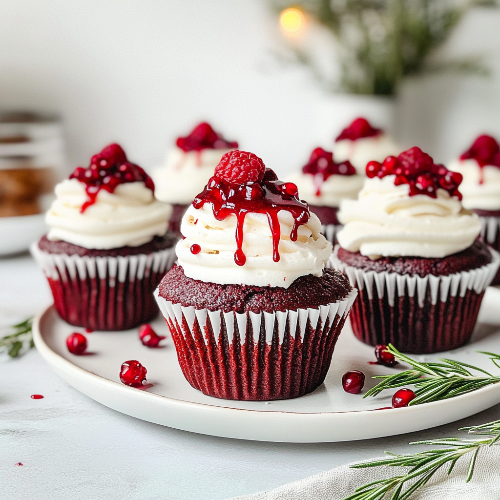 Experience the rich, velvety goodness of these red velvet cupcakes topped with creamy frosting—a perfect treat for celebrations or a well-deserved indulgence.