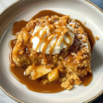 Indulge in the warm, gooey goodness of Salted Caramel Apple Dump Cake, featuring sweet apples and decadent caramel—a perfect dessert for any occasion.