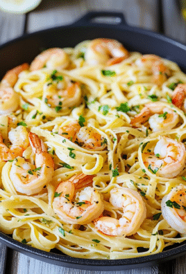 Zesty Lemon Fettuccine with Garlic Shrimp Recipe